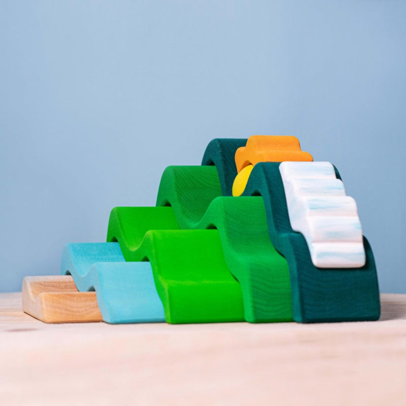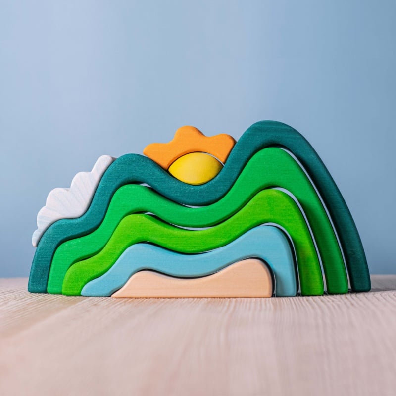 The Mountains, Cloud, and Sun set from BumbuToys is a captivating wooden puzzle that paints a picturesque scene of the great outdoors.