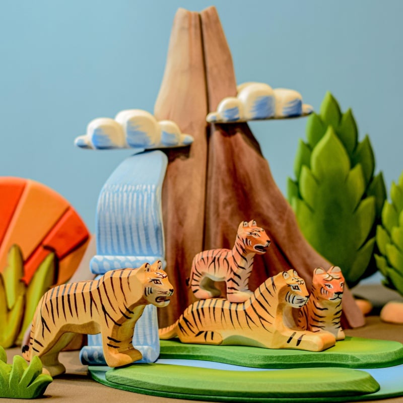 Standing at 32cm tall, the Volcano is an imposing figure, complemented by the vividly detailed Lava and ethereal Clouds, all made from sustainably sourced wood and painted with non-toxic, vibrant colors.