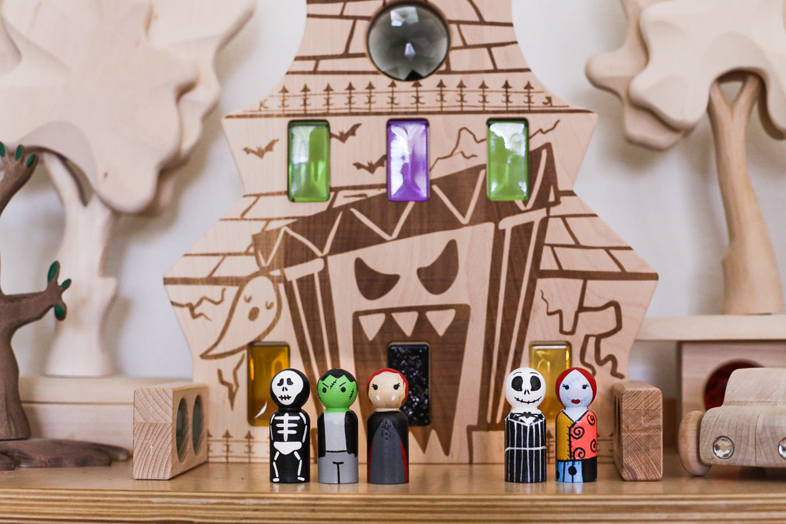 Unleash creativity with our Monster House! Designed by us then crafted from premium hardwood in Michigan, this unique house will be a real crowd pleaser. Designed with imagination in mind, this spooky house set combines fun with developmental play, making it the perfect addition to any playroom. Let your child’s creativity roar with the Hello Sugarhouse Monster House!