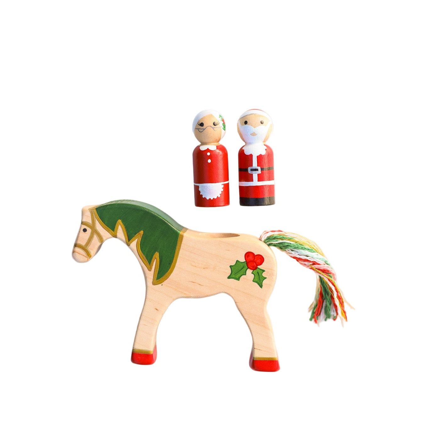 Meet our Mr. and Mrs. Claus Hand-Painted Peg Doll Set – a festive duo ready to bring holiday cheer to your child's playtime! With charming details and a touch of Christmas magic, these pint-sized toys are perfect for little hands, sparking imaginative adventures and spreading joy throughout the season. Celebrate the holidays with this delightful and timeless addition to your child's toy collection!