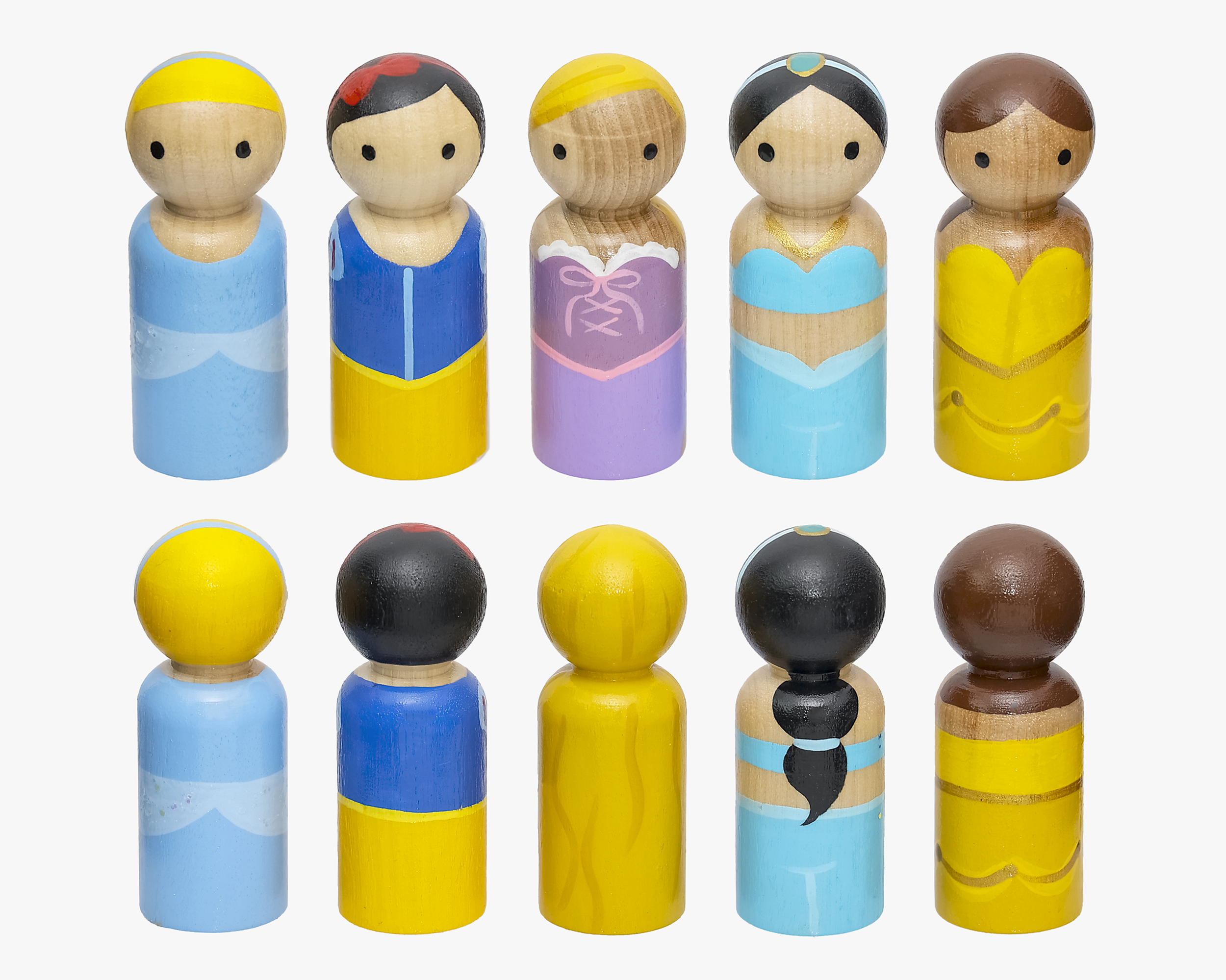 Discover the magic of fairytales with our Princess Peg Doll Bundle! This set includes five beautifully hand-painted princess dolls, each crafted with delicate detail to inspire endless stories and adventures. Perfect for sparking creativity and imaginative play, these charming dolls are a delightful addition to any child’s collection.