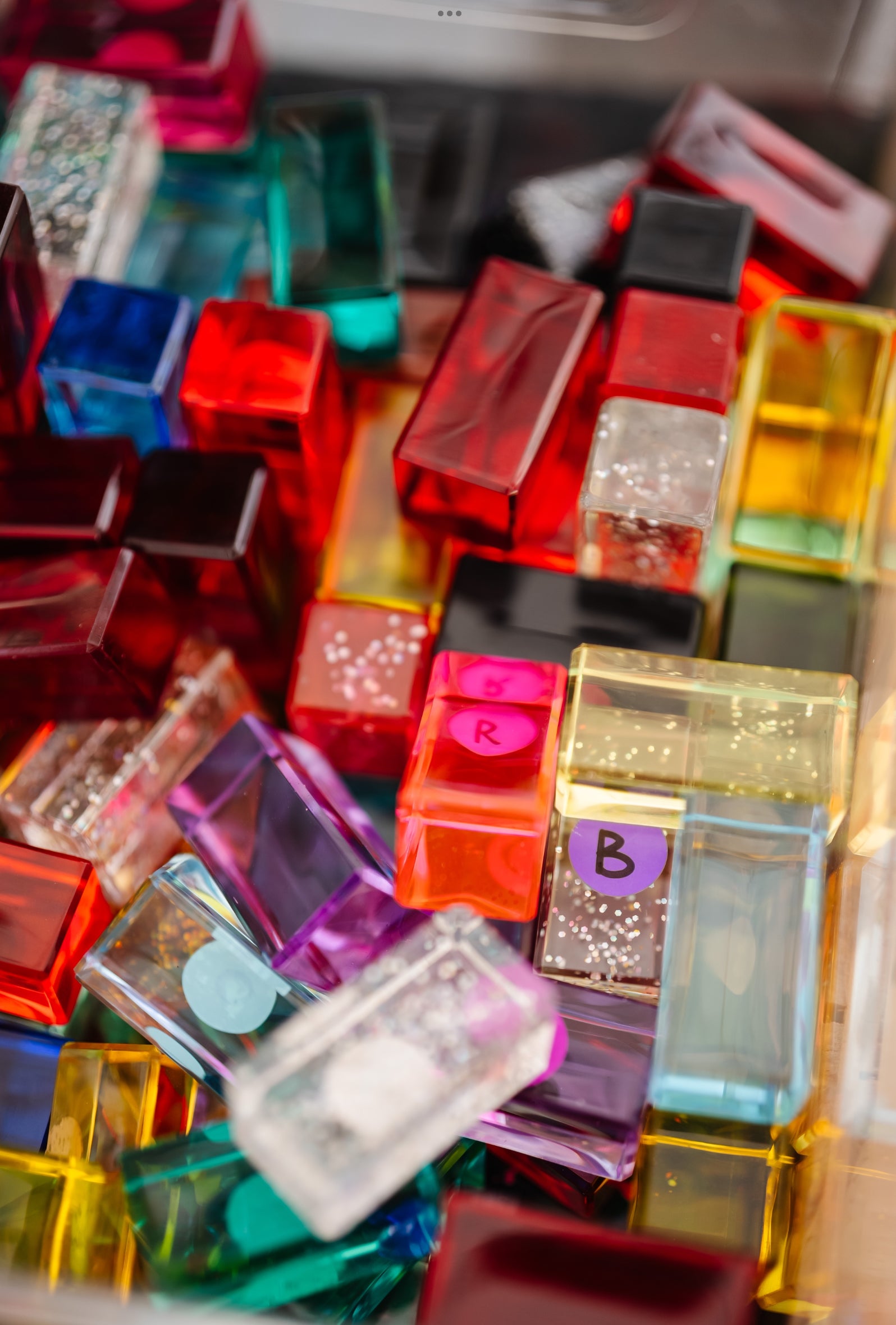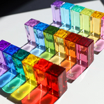 This listing is for ONE pack of 6 rainbow blocks. Packs are assorted and random colors. These rainbow blocks were used as displays or at our play tables at markets. They show slight wear with surface scratching that is evident under certain lighting, but otherwise very minimal.