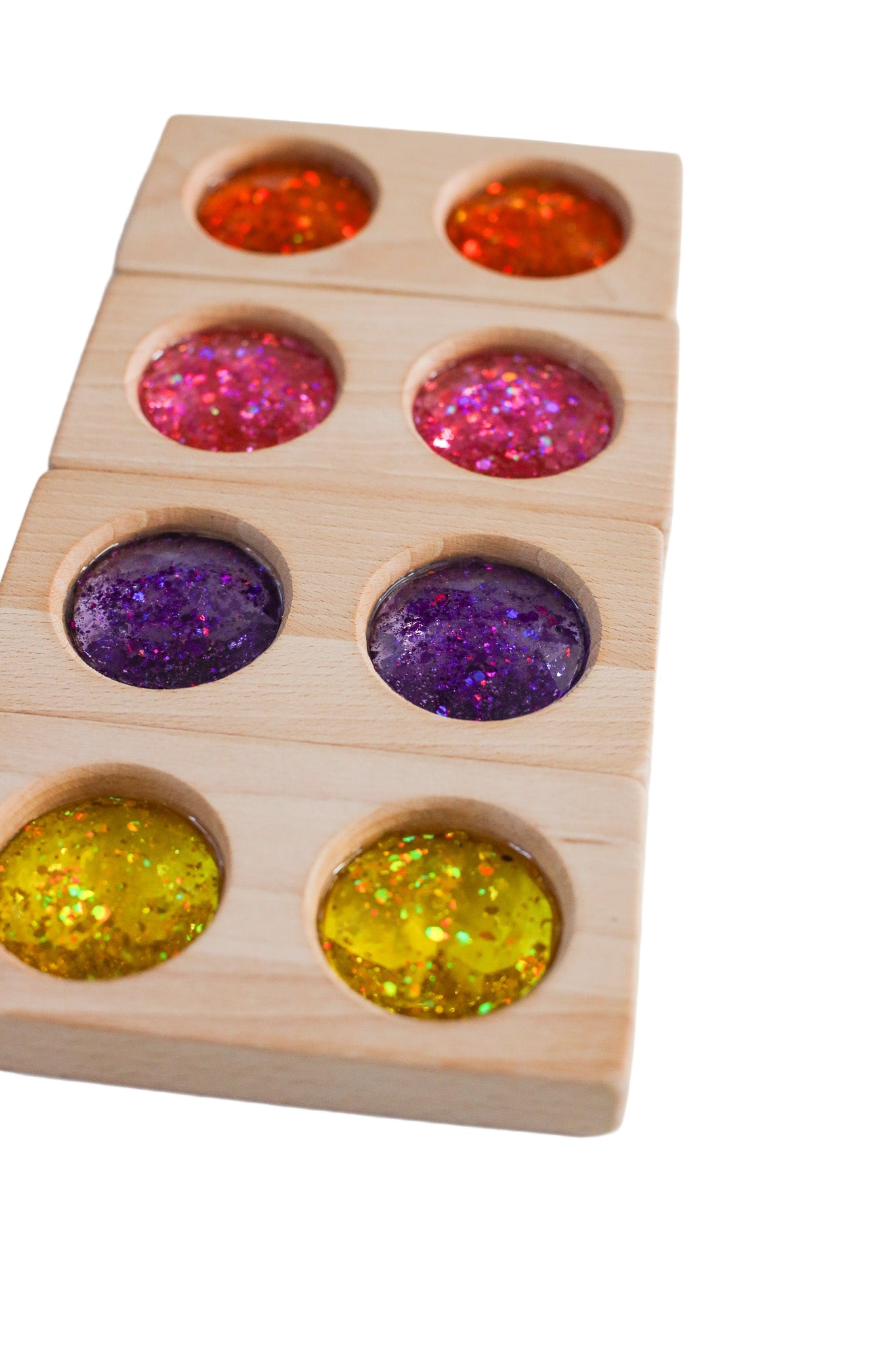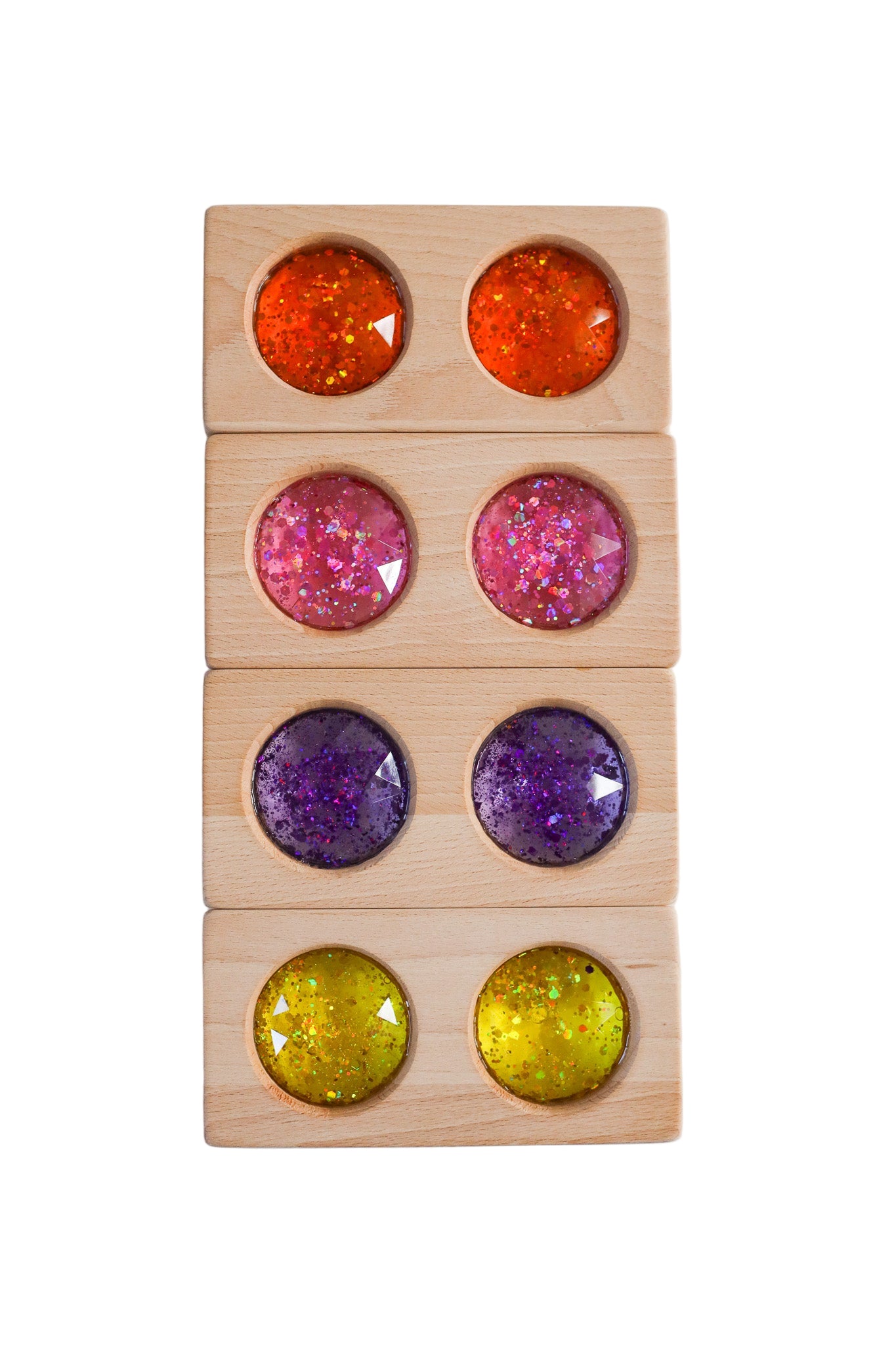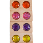 We love the size of our 50mm gems and at Hello Sugarhouse we wanted a fun, giant, whimsical and beautiful set of blocks to complement our other products. The Giant Double Gems are the perfect bridge for little hands into a whole new world of possibilities in block play. Two double sided gem windows permanently secured in Michigan grown and harvested Beech wood seem to glow from within with their clarity and vibrance.
