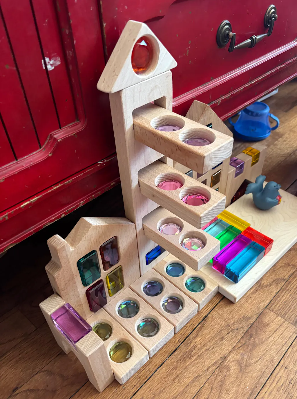 Our beloved Stand Blocks are back in stock — and better than ever. This updated Version 2.0 has been customized with Gem colors EXCLUSIVE to Hello Sugarhouse (we hand picked these shades one by one!)  and precisely re-engineered to fit the sides of our houses snugly and securely — no more sagging stands or wobbly displays. Just perfect fits, stronger builds, and endless new play possibilities.  With their ingenious design, Stand Blocks offer a seamless solution to reinforce and secure your sugarhouses and block set pieces, ensuring a sturdy and reliable structure.